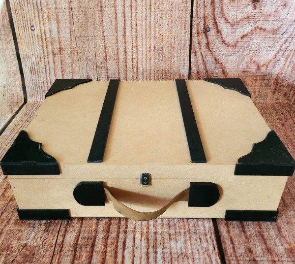 Valija de madera: con detalles en negro. (40x27x12cm)